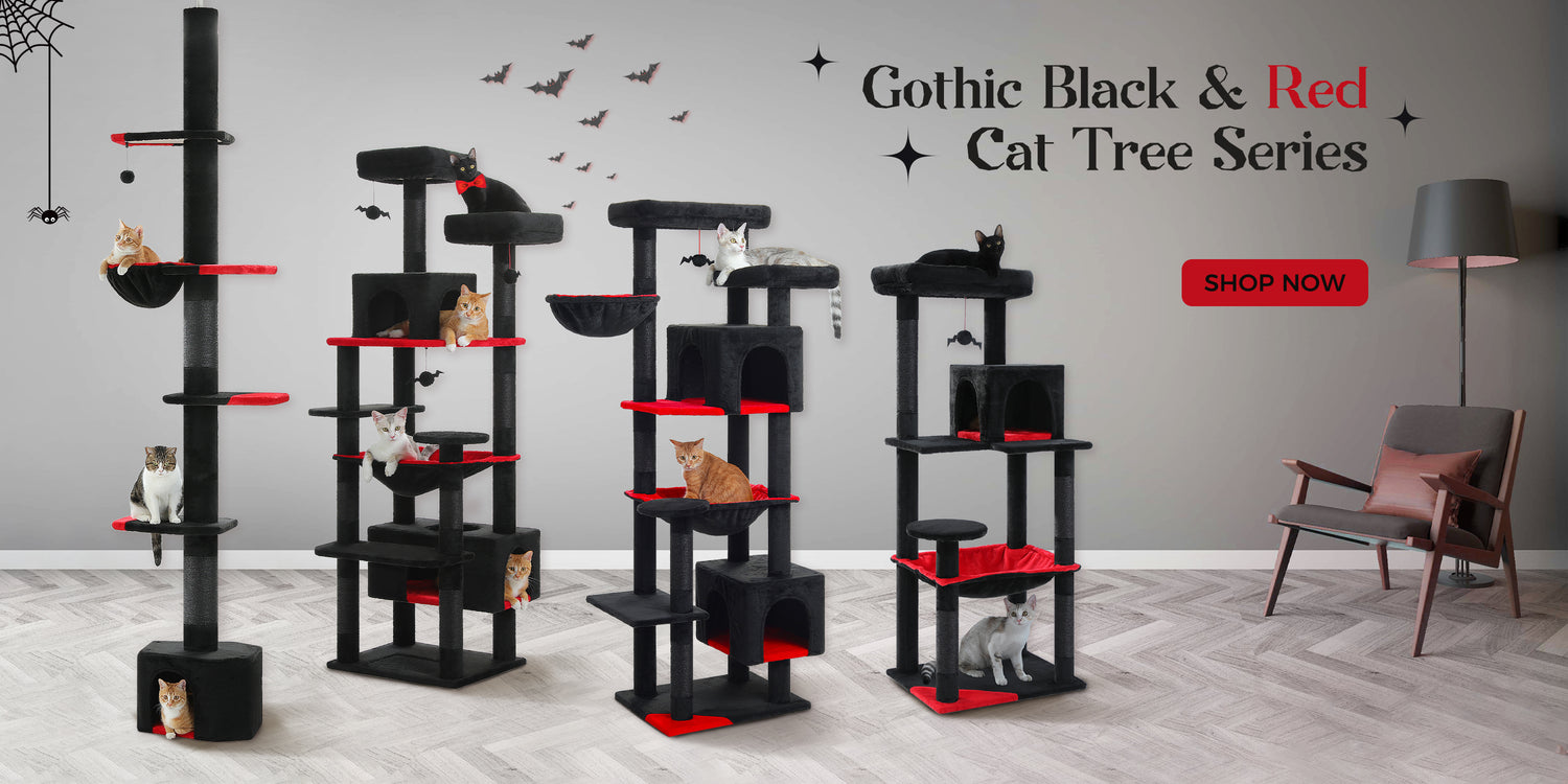 PAWZ Road Gothic Cat Tree Tower Floor to Ceiling Cat Scratching Post Scratcher Black