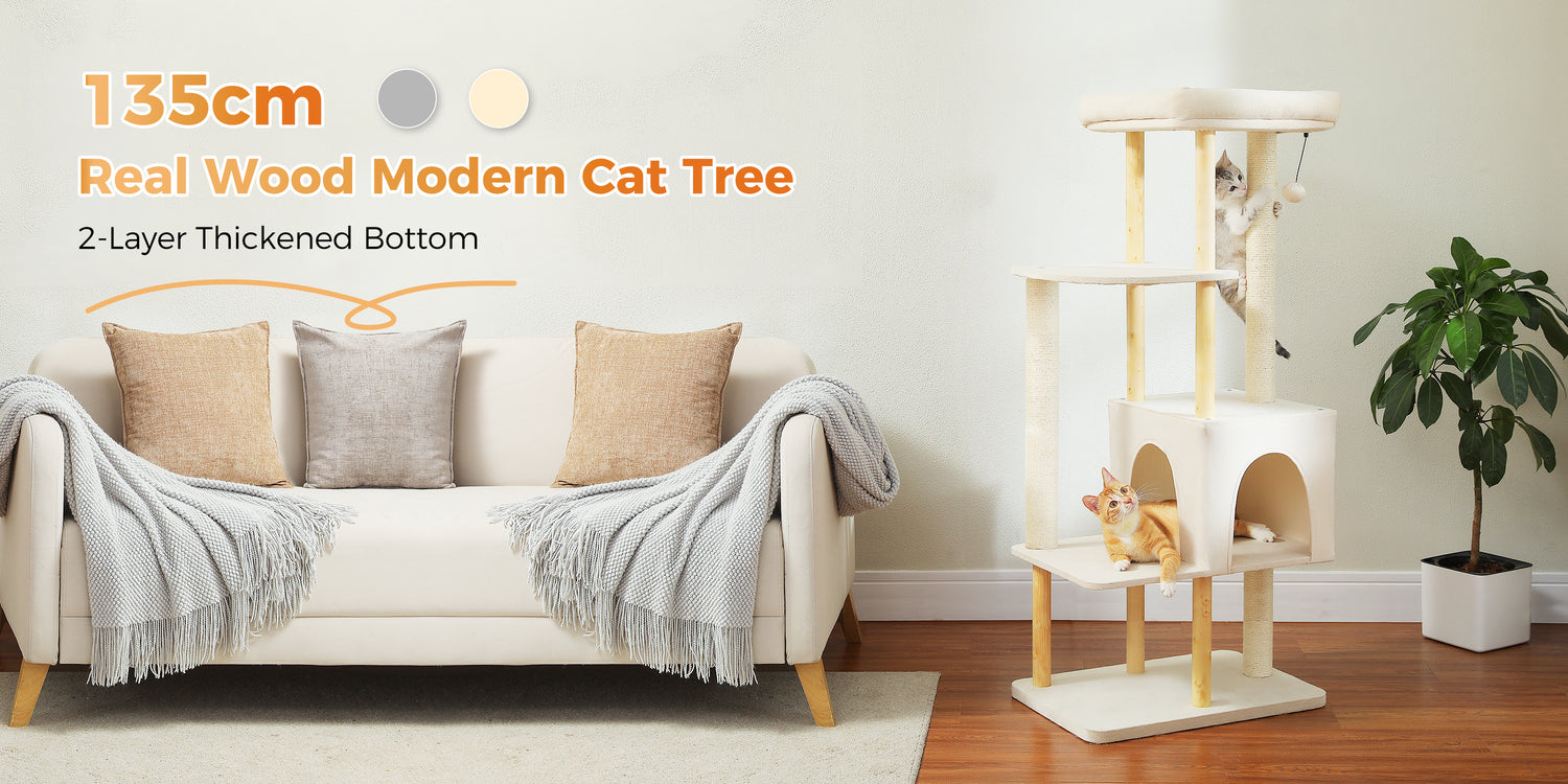 PAWZ Road 135CM Cat Tree Tower Scratching Post Scratcher Wooded Cats Condo House Beige