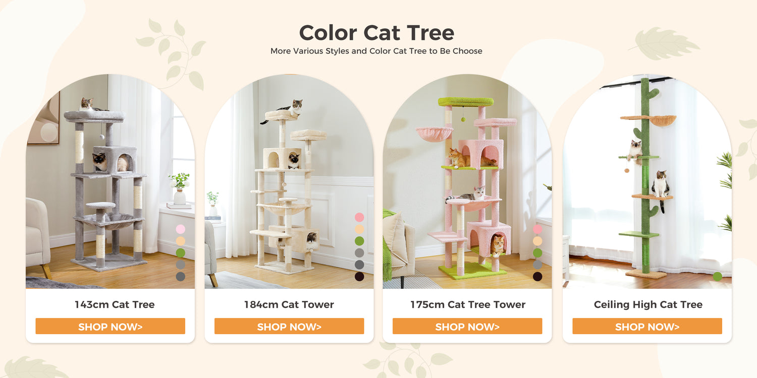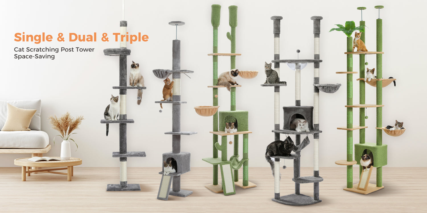 PAWZ Road Cat Tree Tower Scratching Post Ceiling High Cat Scratcher Condo Beds Beige