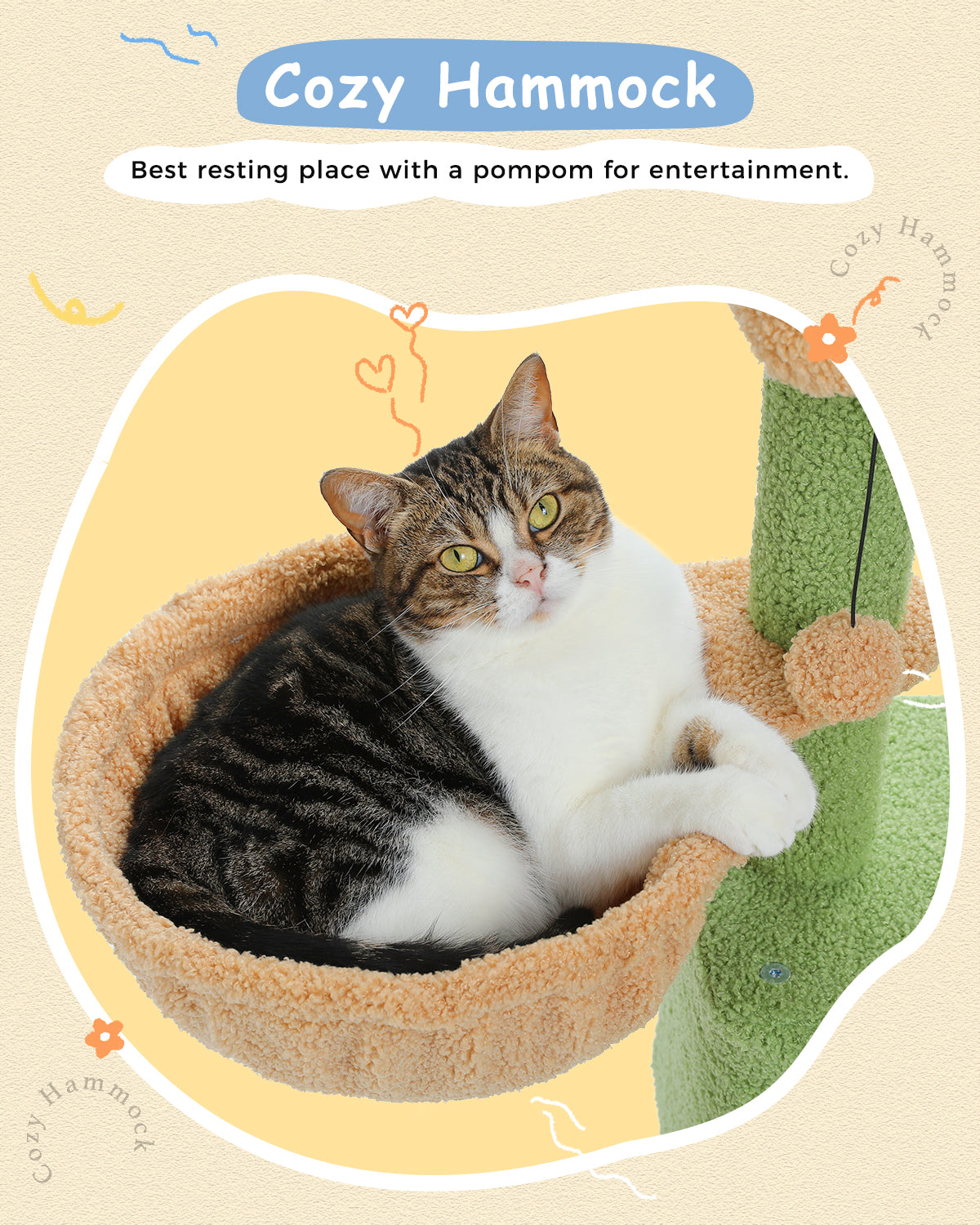 2 Color Choices: This 88cm cat tree provides you with a variety of color options for your indoor cats. You can select a classic grey one to harmonize with your room's decor, or a lively cuctus cat tree to to catch your cat's eye.