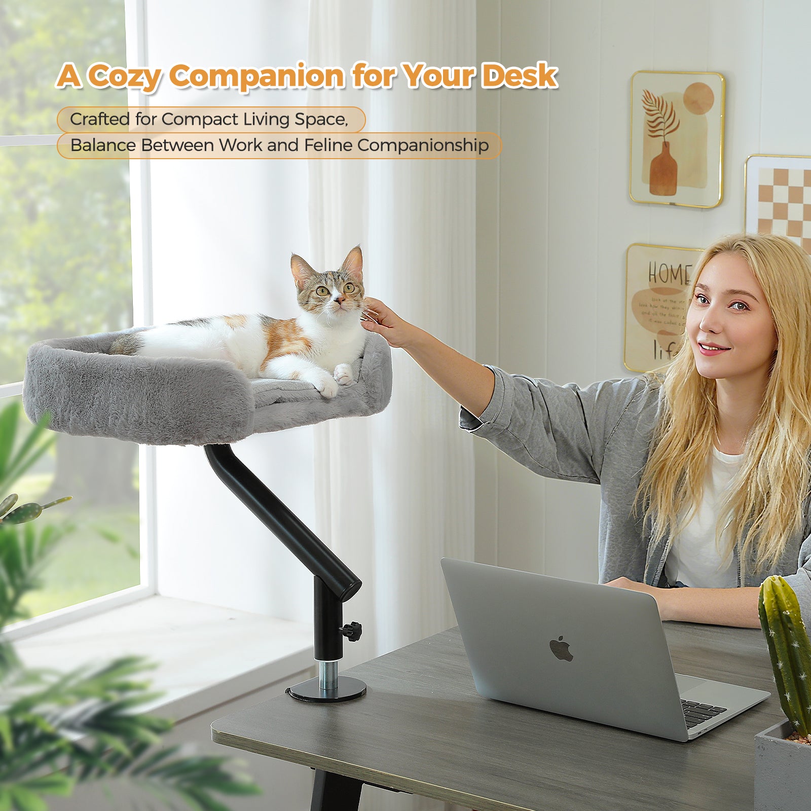 - Cat Close & Workplace Clear: Ideal for work spaces, this elevated cat bed mounts directly to your desk or table, keeping your feline friend close while freeing up valuable floor and desk space. Perfect for maintaining a clutter-free environment during work or leisure time.